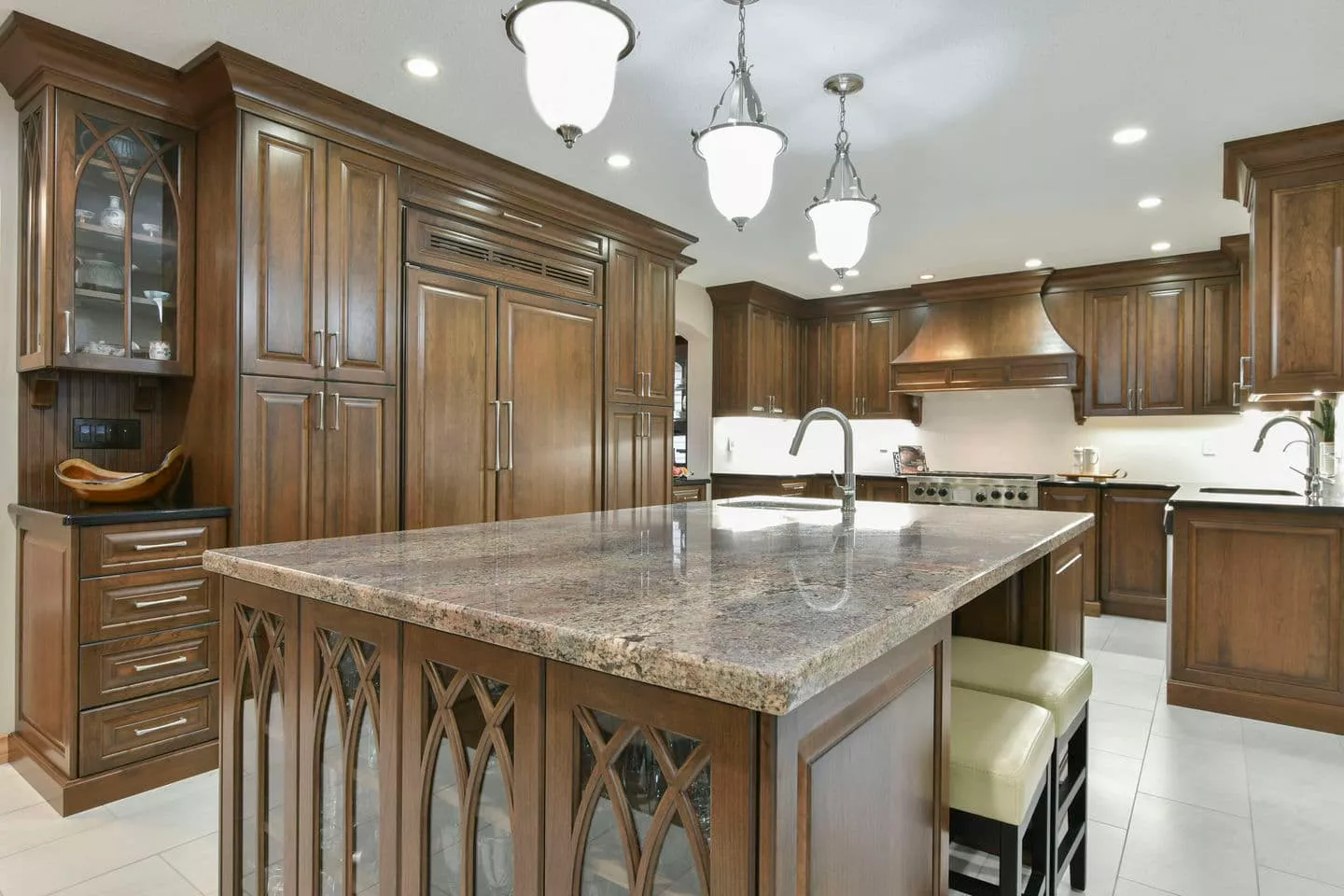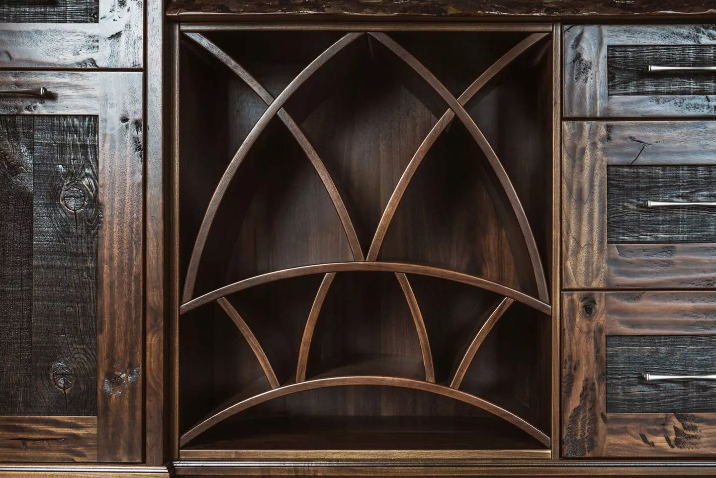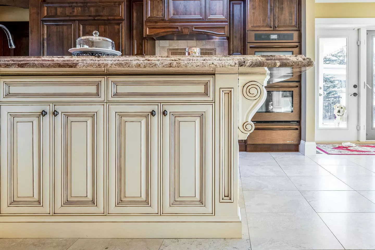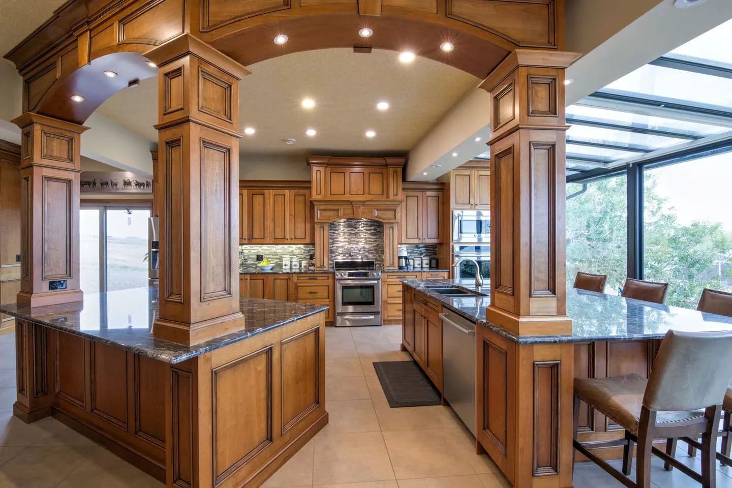 Ornate carvings, wood paneling, crown moldings and elaborate details create a sense of grandeur and elegance.